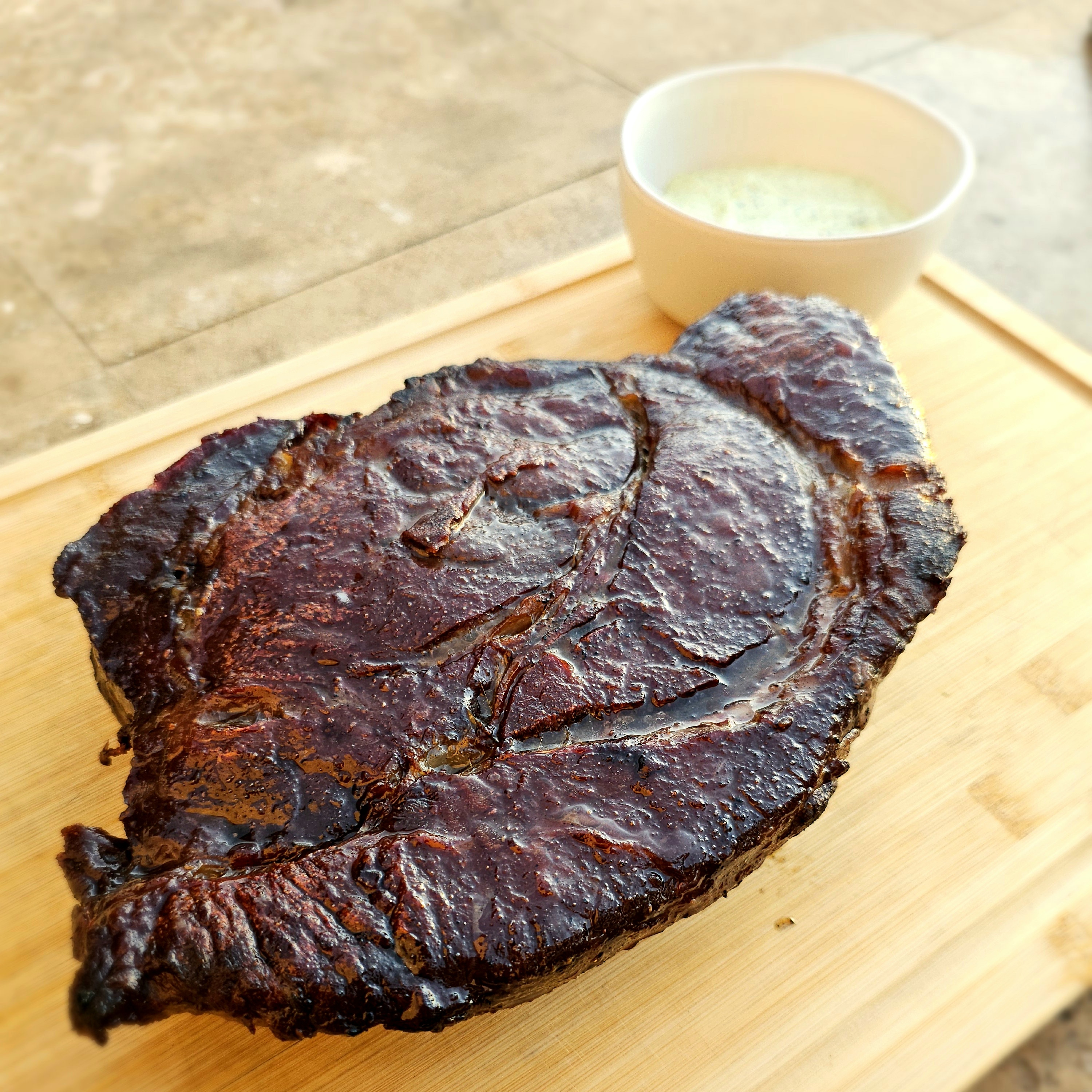 - Enjoy your delicious 48-hour dry-brined and reverse-seared Chuck Roast with a creamy chimichurri sauce!